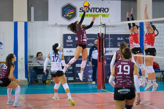 SANTORO CREATIVE HUB SALERNO: Vujko 14, Palmese 19, Erra 8, Tenza 4, Miglino 3, Giammarino 1, Chiappa, Parisi, Pastore, Pepe, Vitiello, Carbone (L). All. Cacace