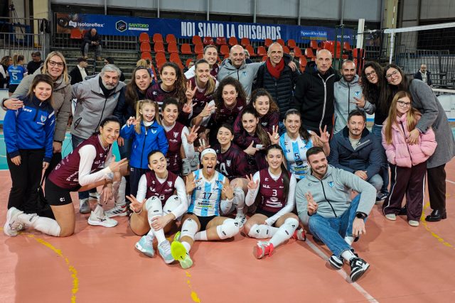 La Santoro Creative Hub Salerno s’aggiudica il derby contro la Volley World Napoli e riparte di slancio. La formazione cara al presidente Pino D’Andrea archivia così nel migliore dei modi le due sconfitte contro Nardò ed Isernia e rilancia le proprie quotazioni in chiave playoff. Scontato il turno di squalifica, tornano titolari Tenza e Vujko, in campo dell’inizio con Pepe, Erra, Miglino, Palmese e con Carbone libero. Le foxes partono subito con tre punti consecutivi, ma Napoli reagisce e si porta avanti 6-8. Consapevoli dell’importanza della posta in palio le ragazze di coach Cacace appaiono un po’ contratte ma sul 14-14 sull’asse Erra-Palmese infilano quattro punti di fila con Miglino che piazza il punto del 18-14. Rotto l’equilibrio le granata vanno a chiudere il set 25-20 con il muro di Pepe. Nel secondo set arriva la reazione di Napoli ma con Palmese e Miglino, la Santoro Creative Hub risponde colpo su colpo ai punti di Panacea e Badalamenti. Napoli, però, riesce ad allungare, dopo due punti di Pepe, portandosi 18-22. Le foxes non mollano e con Vujko e Palmese si portano sul 23-22. Il finale di set è da brividi tra servizi sbagliati, il muro di Vujko del 25-24, ma sono le partenopee che, dopo aver annullato due set point piazzano l’allungo decisivo, chiudendo 26-28. Nel terzo set le foxes provano subito a imporre il proprio gioco. Sull’8-7 ecco l’accelerata. Pepe, Palmese ed Erra, ben azionate da Tenza, vanno a segno a ripetizione con la Volley World che scompare piano piano dal campo. Il set è una marcia trionfale delle foxes che vanno a chiudere 25-11. Nel quarto set, subito 3-0 Salerno ma le ospiti ci credono e trovano il controsorpasso 3-4. Si gioca punto a punto con Carbone e compagne che non riescono a piazzare il break decisivo. Anzi sul 16-14, la Volley World con quattro punti di fila si ritrova avanti 16-18. Prima Vujko e poi Erra riportano avanti le foxes che, poi, sul 20-20, piazzano con Palmese, top scorer del match a quota 19 punti, l’allungo decisivo andando a chiudere con il muro di Pepe e l’ace di Tenza che vale il 25-20 e soprattutto tre punti fondamentali per la classifica. «Era importante conquistare la vittoria e riprendere la marcia – ha dichiarato coach Cacace al termine della partita – e la cosa importante in questo derby era soprattutto conquistare i tre punti. Non è stata una prestazione entusiasmante ma nel momento decisivo siamo stati bravi a trovare le soluzioni giuste. È stata una faticaccia ma merito va dato anche alla Volley World Napoli». «Era fondamentale tornare a vincere – ha dichiarato il libero della Santoro Creative Hub Salerno, Eleonora Carbone – e siamo contente per il risultato anche se non è stata certo una delle nostre migliori prestazioni. Nei momenti decisivi siamo state brave a ritrovarci». Nel prossimo turno, le foxes, che agguantano Capurso al quarto posto in classifica, avvicinandosi al terzo posto, saranno di scena sul campo del Monopoli.