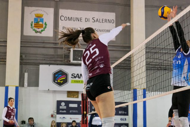 La Santoro Creative Hub Salerno s’aggiudica il derby contro la Volley World Napoli e riparte di slancio. La formazione cara al presidente Pino D’Andrea archivia così nel migliore dei modi le due sconfitte contro Nardò ed Isernia e rilancia le proprie quotazioni in chiave playoff. Scontato il turno di squalifica, tornano titolari Tenza e Vujko, in campo dell’inizio con Pepe, Erra, Miglino, Palmese e con Carbone libero. Le foxes partono subito con tre punti consecutivi, ma Napoli reagisce e si porta avanti 6-8. Consapevoli dell’importanza della posta in palio le ragazze di coach Cacace appaiono un po’ contratte ma sul 14-14 sull’asse Erra-Palmese infilano quattro punti di fila con Miglino che piazza il punto del 18-14. Rotto l’equilibrio le granata vanno a chiudere il set 25-20 con il muro di Pepe. Nel secondo set arriva la reazione di Napoli ma con Palmese e Miglino, la Santoro Creative Hub risponde colpo su colpo ai punti di Panacea e Badalamenti. Napoli, però, riesce ad allungare, dopo due punti di Pepe, portandosi 18-22. Le foxes non mollano e con Vujko e Palmese si portano sul 23-22. Il finale di set è da brividi tra servizi sbagliati, il muro di Vujko del 25-24, ma sono le partenopee che, dopo aver annullato due set point piazzano l’allungo decisivo, chiudendo 26-28. Nel terzo set le foxes provano subito a imporre il proprio gioco. Sull’8-7 ecco l’accelerata. Pepe, Palmese ed Erra, ben azionate da Tenza, vanno a segno a ripetizione con la Volley World che scompare piano piano dal campo. Il set è una marcia trionfale delle foxes che vanno a chiudere 25-11. Nel quarto set, subito 3-0 Salerno ma le ospiti ci credono e trovano il controsorpasso 3-4. Si gioca punto a punto con Carbone e compagne che non riescono a piazzare il break decisivo. Anzi sul 16-14, la Volley World con quattro punti di fila si ritrova avanti 16-18. Prima Vujko e poi Erra riportano avanti le foxes che, poi, sul 20-20, piazzano con Palmese, top scorer del match a quota 19 punti, l’allungo decisivo andando a chiudere con il muro di Pepe e l’ace di Tenza che vale il 25-20 e soprattutto tre punti fondamentali per la classifica. «Era importante conquistare la vittoria e riprendere la marcia – ha dichiarato coach Cacace al termine della partita – e la cosa importante in questo derby era soprattutto conquistare i tre punti. Non è stata una prestazione entusiasmante ma nel momento decisivo siamo stati bravi a trovare le soluzioni giuste. È stata una faticaccia ma merito va dato anche alla Volley World Napoli». «Era fondamentale tornare a vincere – ha dichiarato il libero della Santoro Creative Hub Salerno, Eleonora Carbone – e siamo contente per il risultato anche se non è stata certo una delle nostre migliori prestazioni. Nei momenti decisivi siamo state brave a ritrovarci». Nel prossimo turno, le foxes, che agguantano Capurso al quarto posto in classifica, avvicinandosi al terzo posto, saranno di scena sul campo del Monopoli.