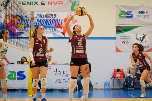 Sconfitta amarissima per la Santoro Creative Hub Salerno che, in evidente giornata no, lascia l’intera posta in palio al Monopoli nello scontro diretto della 17^ giornata del Girone I di Serie B2. Un ko reso ancor più difficile da digerire perché arrivato dopo una prestazione decisamente al di sotto del valore della squadra del presidente Pino D’Andrea che scivola al sesto posto, scavalcata proprio dalle pugliesi e a meno sei dal terzo posto che vale i playoff occupato dall’Arabona. Coach Cacace manda in campo ad inizio match la consueta formazione con capitan Tenza in regia, Palmese opposto, Pepe e Vujko centrali, Carbone libero e con Serra e Miglino di banda. Le padrone di casa partono subito forte e approfittano dei troppi errori salernitani in tutti i fondamentali per piazzare un break di cinque punti di fila che vale il 12-6 che spezza l’equilibrio del parziale. Monopoli allunga, Erra e Tenza tengono in scia le foxes che tornano anche a meno 4 con Pepe sul 2-16. Le padrone di casa restano concentrate e chiudono 25-20. Nel secondo set quando era lecito attendersi la reazione delle ragazze di coach Paolo Cacace è ancora Monopoli a partire meglio, portandosi sul 9-5. Coach Cacace prova a cambiare qualcosa inserendo Pastore al posto di Miglino. La musica non cambia: Salerno sbaglia, Monopoli no e chiude 25-15. Nel terzo set, sul punteggio di 3-1, entra finalmente in campo la Santoro Creative Hub che infila otto punti di fila, con Palmese che finalmente trova le giuste conclusioni volando sul 3-9. L’inerzia cambia e sono le granata a dettare legge con il muro che finalmente si fa sentire e Palmese che piazza il 12-18. Monopoli con cinque punti consecutivi torna a meno uno, 17-18, rendendo avvincente il finale di set. Sul 21-21 prima Vujko e poi Erra con due muri piazzano l’allungo con il punto di Vujko che vale il 22-25. Nel quarto set, le foxes, subito sotto di 4, ritrovano la parità a quota 8 e poi anche due punti di vantaggio sul 10-12. Monopoli però continua a restare in scia e dal 14-14 piazza un break di 4-0. Le foxes provano a rientrare nel set, ma le pugliesi non concedono nulla chiudendo 25-22 e conquistando così la terza vittoria consecutiva. «È stata una brutta sconfitta dovuta ad un approccio pessimo – ha dichiarato coach Cacace – nel corso della settima dovremmo sistemare tante cose. Abbiamo poi perso alcune sicurezze e non siamo riuscite ad aggiustare il tiro. Nel terzo set ci siamo ripresi ma non è bastato. Dobbiamo fare tutti un mea culpa, ritrovare l’umiltà e lavorare tanto». «Tante cose non hanno funzionato – ha dichiarato Martina Pepe, centrale della Santoro Creative Hub Salerno anche quelle cose in cui siamo brave. Abbiamo sbagliato atteggiamento nei primi due set in cui praticamente non abbiamo giocato. Non eravamo noi, peccato non averla giocata dall’inizio. Il campionato è ancora lungo, ora archiviamo questa sconfitta e ripartiamo». Nel prossimo turno la Santoro Creative Hub Salerno tornerà in campo alla Senatore contro la Volare Benevento.