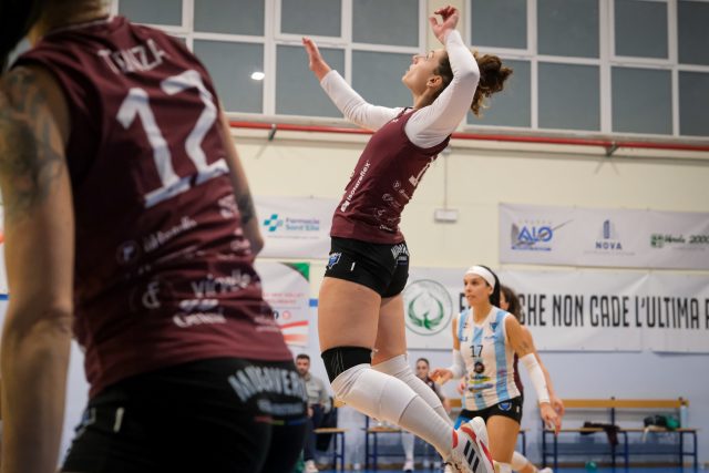 Sconfitta amarissima per la Santoro Creative Hub Salerno che, in evidente giornata no, lascia l’intera posta in palio al Monopoli nello scontro diretto della 17^ giornata del Girone I di Serie B2. Un ko reso ancor più difficile da digerire perché arrivato dopo una prestazione decisamente al di sotto del valore della squadra del presidente Pino D’Andrea che scivola al sesto posto, scavalcata proprio dalle pugliesi e a meno sei dal terzo posto che vale i playoff occupato dall’Arabona. Coach Cacace manda in campo ad inizio match la consueta formazione con capitan Tenza in regia, Palmese opposto, Pepe e Vujko centrali, Carbone libero e con Serra e Miglino di banda. Le padrone di casa partono subito forte e approfittano dei troppi errori salernitani in tutti i fondamentali per piazzare un break di cinque punti di fila che vale il 12-6 che spezza l’equilibrio del parziale. Monopoli allunga, Erra e Tenza tengono in scia le foxes che tornano anche a meno 4 con Pepe sul 2-16. Le padrone di casa restano concentrate e chiudono 25-20. Nel secondo set quando era lecito attendersi la reazione delle ragazze di coach Paolo Cacace è ancora Monopoli a partire meglio, portandosi sul 9-5. Coach Cacace prova a cambiare qualcosa inserendo Pastore al posto di Miglino. La musica non cambia: Salerno sbaglia, Monopoli no e chiude 25-15. Nel terzo set, sul punteggio di 3-1, entra finalmente in campo la Santoro Creative Hub che infila otto punti di fila, con Palmese che finalmente trova le giuste conclusioni volando sul 3-9. L’inerzia cambia e sono le granata a dettare legge con il muro che finalmente si fa sentire e Palmese che piazza il 12-18. Monopoli con cinque punti consecutivi torna a meno uno, 17-18, rendendo avvincente il finale di set. Sul 21-21 prima Vujko e poi Erra con due muri piazzano l’allungo con il punto di Vujko che vale il 22-25. Nel quarto set, le foxes, subito sotto di 4, ritrovano la parità a quota 8 e poi anche due punti di vantaggio sul 10-12. Monopoli però continua a restare in scia e dal 14-14 piazza un break di 4-0. Le foxes provano a rientrare nel set, ma le pugliesi non concedono nulla chiudendo 25-22 e conquistando così la terza vittoria consecutiva. «È stata una brutta sconfitta dovuta ad un approccio pessimo – ha dichiarato coach Cacace – nel corso della settima dovremmo sistemare tante cose. Abbiamo poi perso alcune sicurezze e non siamo riuscite ad aggiustare il tiro. Nel terzo set ci siamo ripresi ma non è bastato. Dobbiamo fare tutti un mea culpa, ritrovare l’umiltà e lavorare tanto». «Tante cose non hanno funzionato – ha dichiarato Martina Pepe, centrale della Santoro Creative Hub Salerno anche quelle cose in cui siamo brave. Abbiamo sbagliato atteggiamento nei primi due set in cui praticamente non abbiamo giocato. Non eravamo noi, peccato non averla giocata dall’inizio. Il campionato è ancora lungo, ora archiviamo questa sconfitta e ripartiamo». Nel prossimo turno la Santoro Creative Hub Salerno tornerà in campo alla Senatore contro la Volare Benevento.